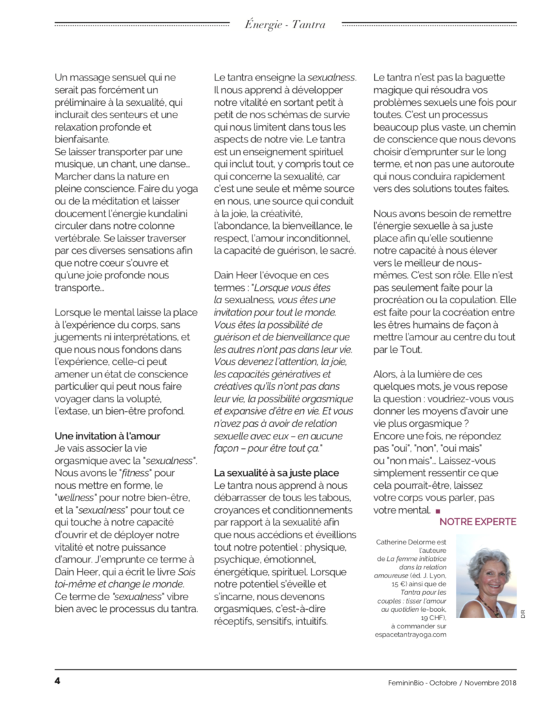 Le journal FEMININ BIO m'a demandé d'écrire un article sur le thème de l'énergie, sujet du nouveau numéro qui sort ces jours :