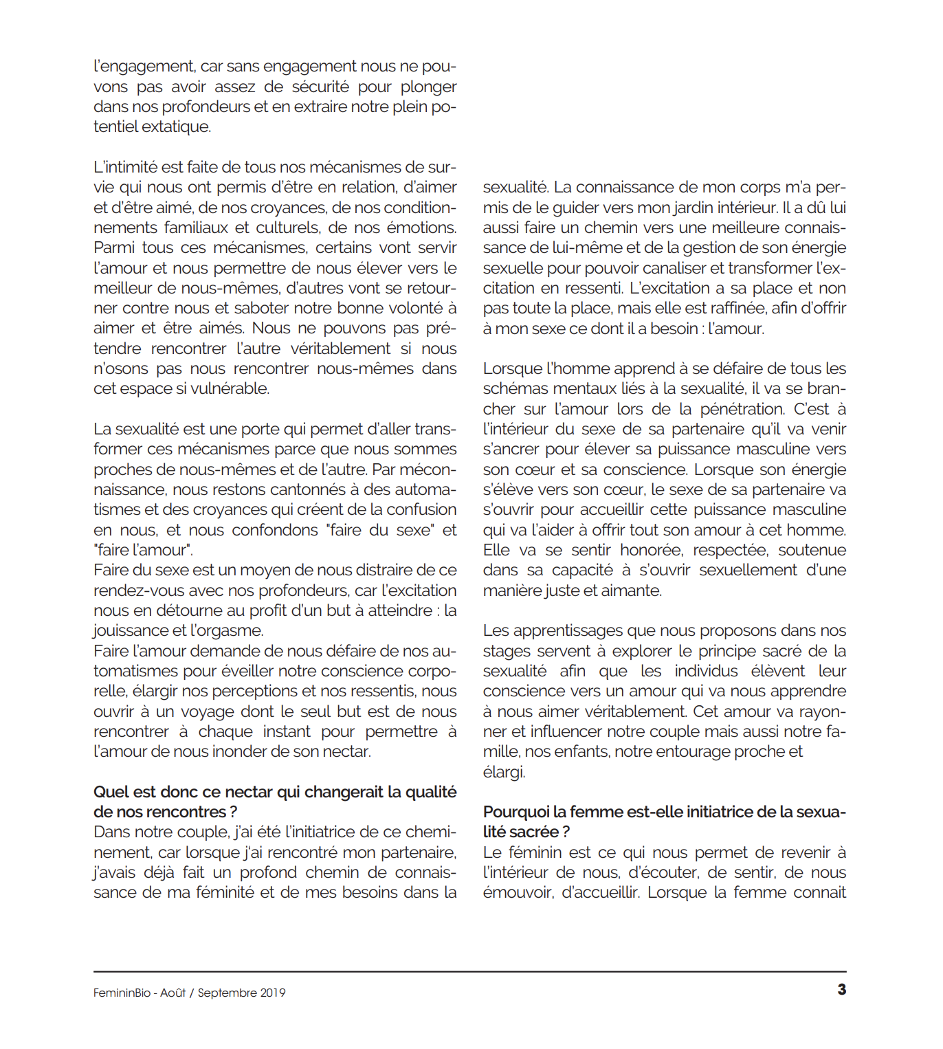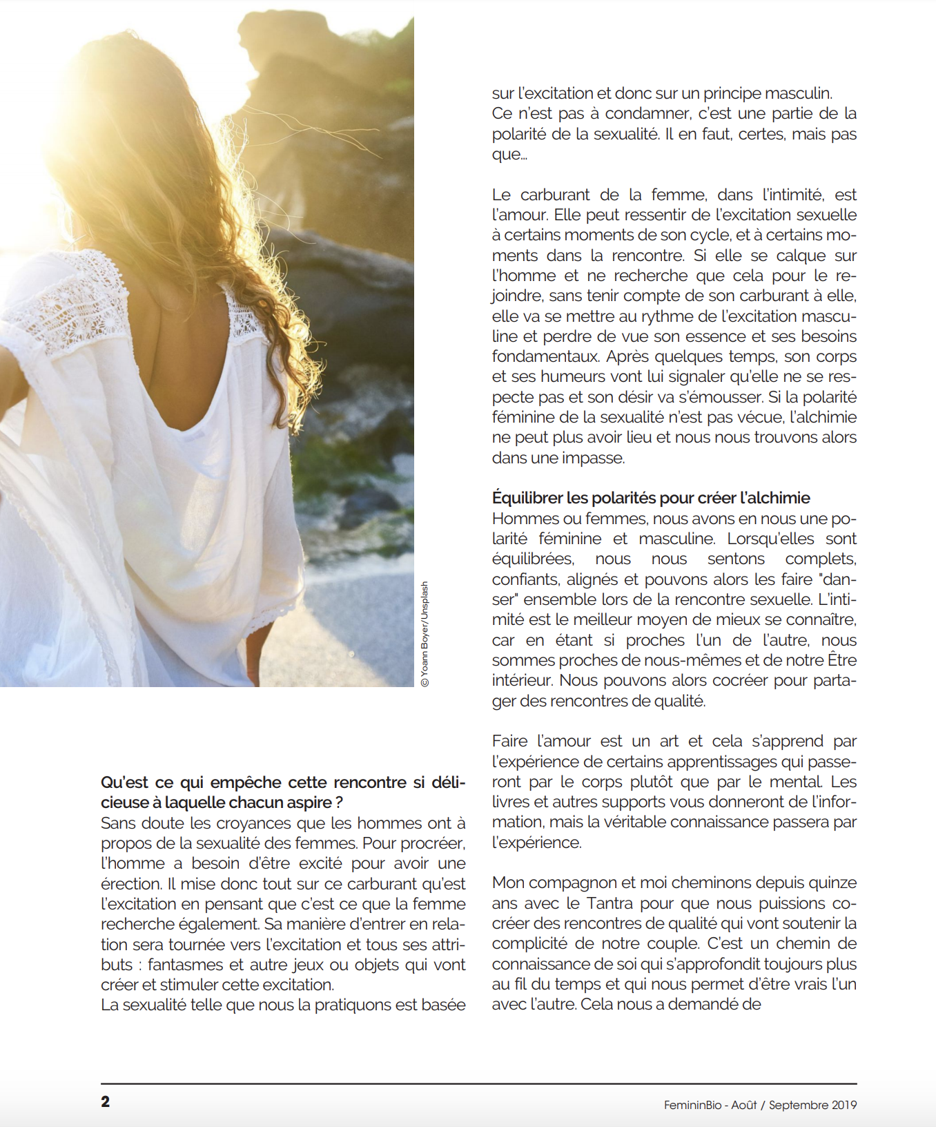 je vous partage un article écrit dans le journal "Féminin bio" du mois de septembre 2019